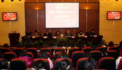 3月2日下午,2100报告厅花团锦簇,激情荡漾。我校纪念三八国际劳动妇女节101周年暨先进表彰大会在这里隆重举行。党委书记徐佩莉、党委副书记胡晟和女教授、女教职工、女大学生的代表、2009~2010年度各级三八红旗手和红旗集体的代表等160余人欢聚一堂共庆三八国际劳动妇女节!大会由校妇委会常务副主任吴音主持。