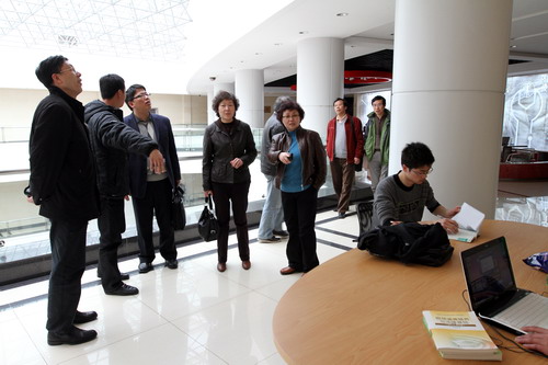 会后,上海应用技术学院一行参观了图文中心多媒体自助学习区、自助研讨室、借阅室、密集书库等场所。