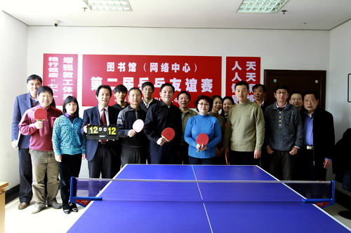 4月11日至13日,图书馆利用中午时间在二楼组织了为期三天的图书馆(网络中心)第二届乒乓球友谊赛。该活动旨在响应上海市总工会提出的“天天锻炼、人人健康”的号召,切实贯彻学校工会提出的推行健康“七个一”活动,促进教职工的身心健康,创造一个活泼、和谐的工作氛围。