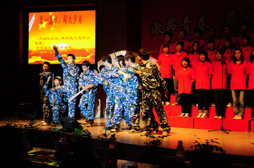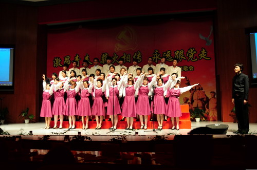火红的五月,激昂的青春。为了庆祝建党90周年,激发我校大学生爱党爱国热情,展现校园青春风采,我校大学生喜迎建党90周年红歌大赛于5月11日晚在图文信息中心四百人报告厅隆重举行,同学们用歌声表达了青年学子对党的赞美和热爱。