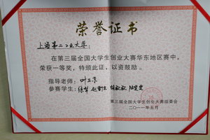 2011年5月21日,第三届全国大学生创业大赛华东赛区晋级赛正式拉开帷幕。来自上海电力学院、上海海事大学、同济大学、上海大学、上海理工大学等40余所高校参赛。经过一整天的激烈角逐,我校机电工程学院叶卫东老师率领的参赛团队获得了本科组一等奖的佳绩。