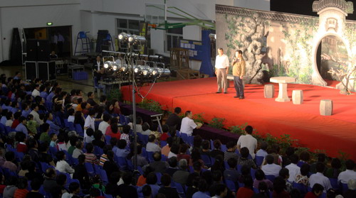 在演出前夕,还发生了一个小插曲。由于原来的演出剧目《雷雨》中的主要演员突然患病,改演《大雷雨》。当工会常务副主席严治俊和上海沪剧院邵副院长在正式演出前向大家告知致谦时,得到了充分理解。上海沪剧团表示,《雷雨》一定会在二工大上演,届时,我们将再次不出校门欣赏到美妙的紫竹调!