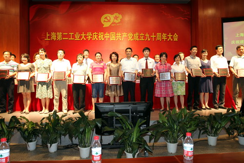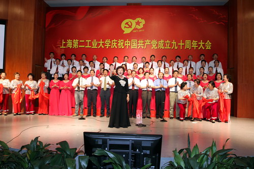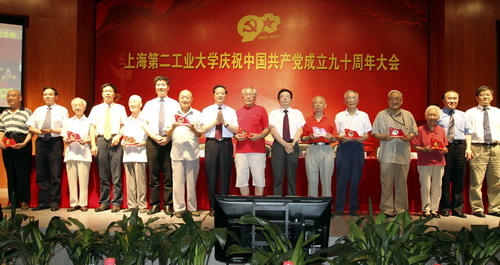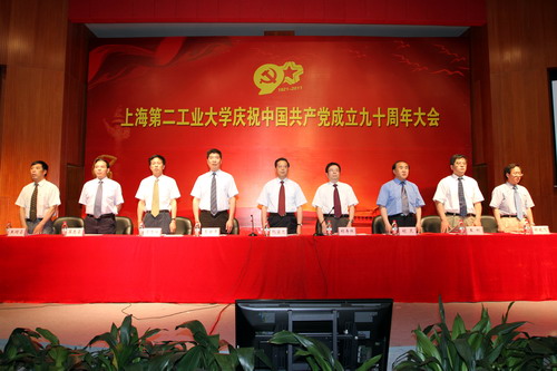 党委书记阮显忠作重要讲话。他首先代表学校党委对获得表彰的集体和个人表示热烈的祝贺,向新加入党组织的全体预备党员表示热烈的祝贺,向全校共产党员致以节日的问候和美好祝愿。他深情回顾了中国共产党自成立以来,团结带领全国各族人民进行了艰苦卓绝的奋斗,取得了举世瞩目的伟大成就。历史表明,只有共产党才能救中国,只有在党的领导下才能发展中国,只有走中国特色社会主义道路才是中华民族复兴的必由之路。上海第二工业大学是新中国社会主义建设的产物。学校建校51年来,在上海市委、市政府和市教卫党委、市教委的正确领导下,紧密联系社会需要和学生实际,发扬艰苦创业、自强不息的精神,坚持改革创新和特色发展,从办学之初的简陋弄堂大学,发展到如今有广泛影响的万人大学。阮显忠书记代表学校党委向长期以来为学校事业发展做出贡献的老领导、老教师、老职工、老党员,向为了学校发展做出突出成绩的先进模范,向关心热爱学校做出贡献的教职工、同学们和校友们,向全体共产党员同志们表示衷心感谢和致以崇高的敬意!