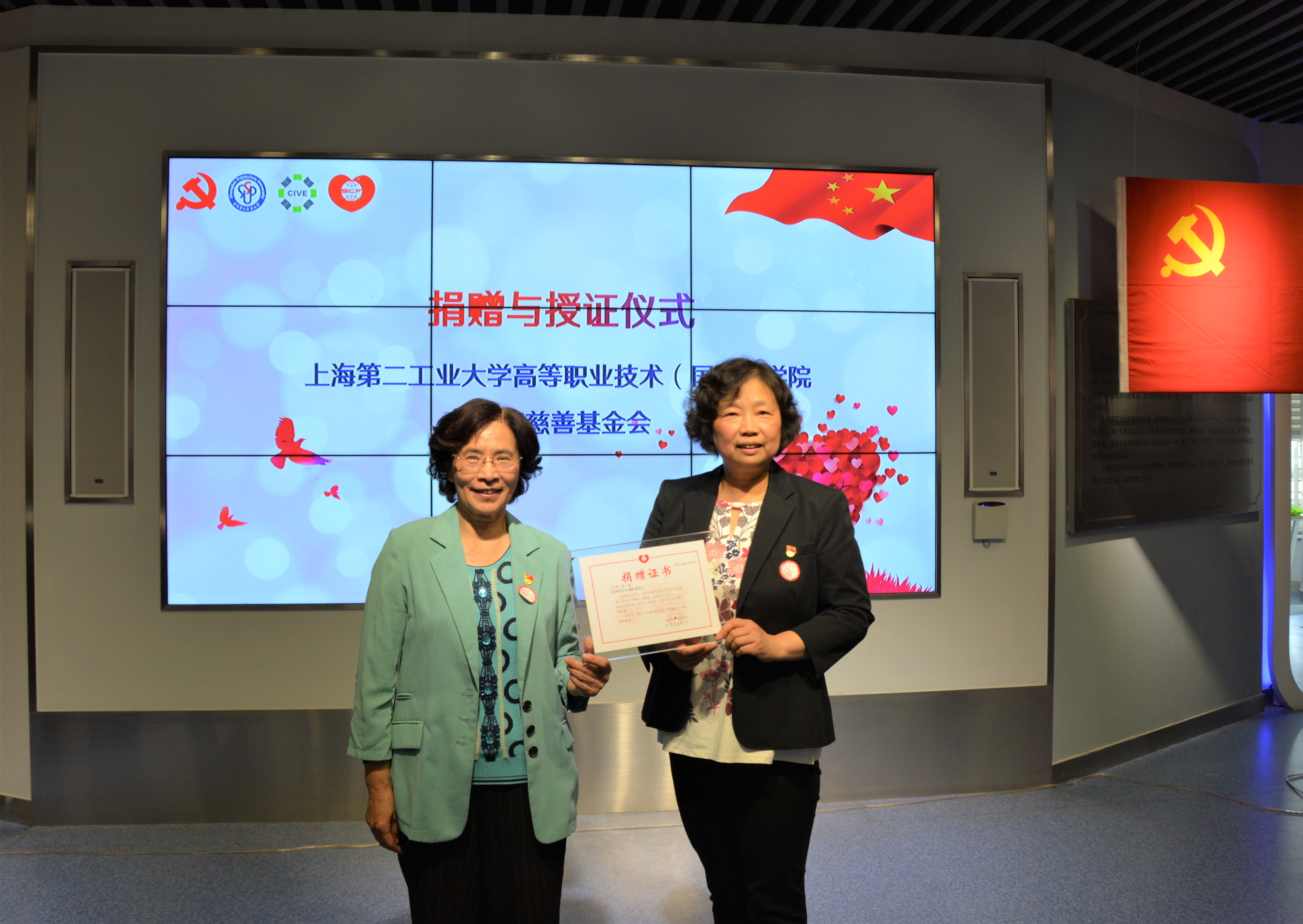 活动中,高职(国际)学院党总支书记黄慧春对活动筹备与进展情况进行了介绍,并代表高职(国际)学院将此次主题党日活动所筹全部善款捐赠给上海市慈善基金会,徐佩莉向高职(国际)学院颁发了捐赠证书。该善款将在上海市慈善基金会的指导与监督下,全部用于“七彩云南”知识种子孵化项目。