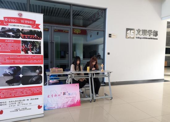 为凝聚更多力量,号召全校师生用爱守初心,“爱守初心,’鞋’伴同行”公益活动在起帆桥头和文理大楼设置了两处校园捐赠点,使更多的人能参与到活动中。活动期间收到了师生们送来的一批批善款和御寒衣物,其中机关三支部党员积极参与,募集钱款1600元。