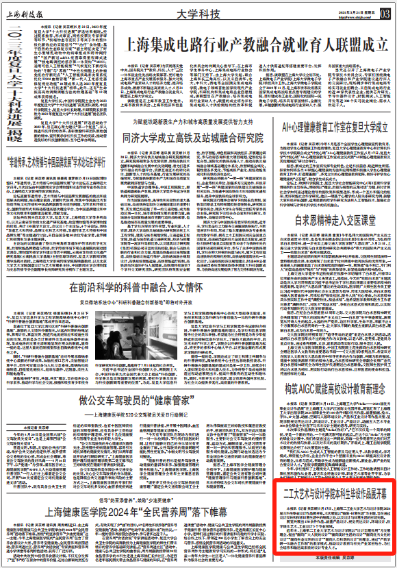 《上海科技报》:二工大艺术与设计学院本科生毕设作品展开幕