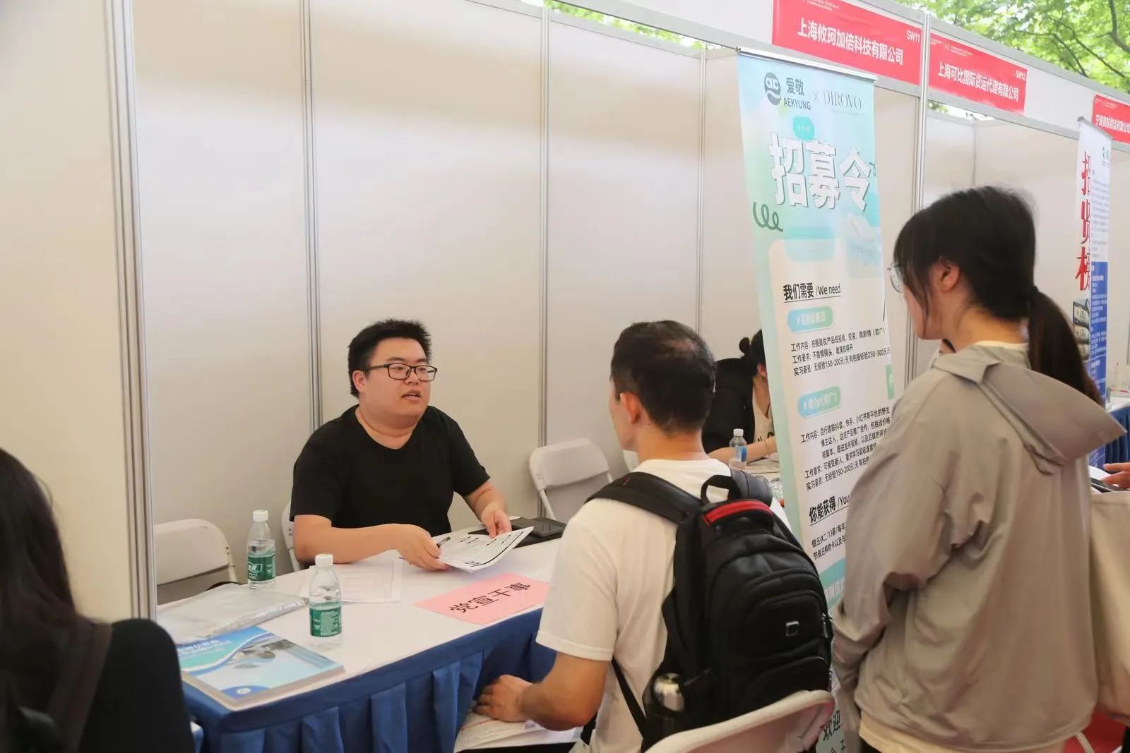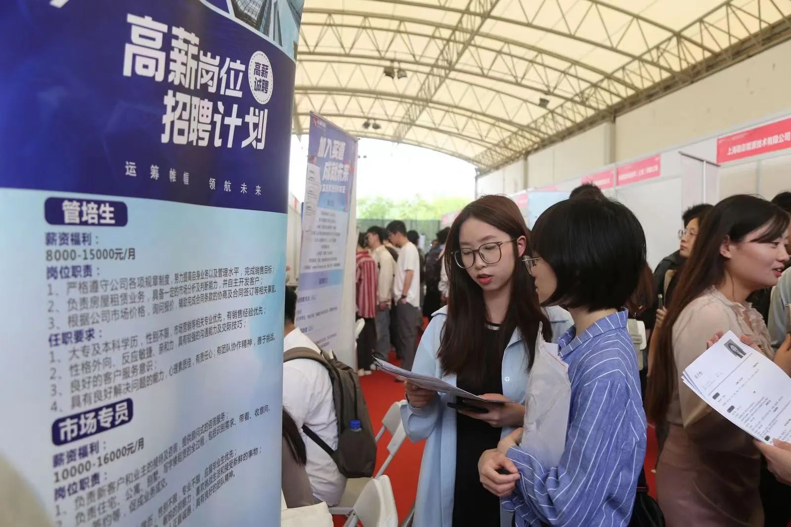 现场共吸引300余家用人单位参加,其中有国有企业63家、世界500强企业71家、“专精特新”企业35家,高新技术116家。涵盖集成电路、生物医药、人工智能等多个重点产业,共提供用人需求1.2万个。同时,1329家企业在线通过视频招聘、直聊招聘的形式提供岗位4.2万个。招聘会现场还设置了征兵入伍及退役安置政策咨询台。上海各高校6000余名学生参加面洽,投递简历超4万份,达成初步意向3000余人次。