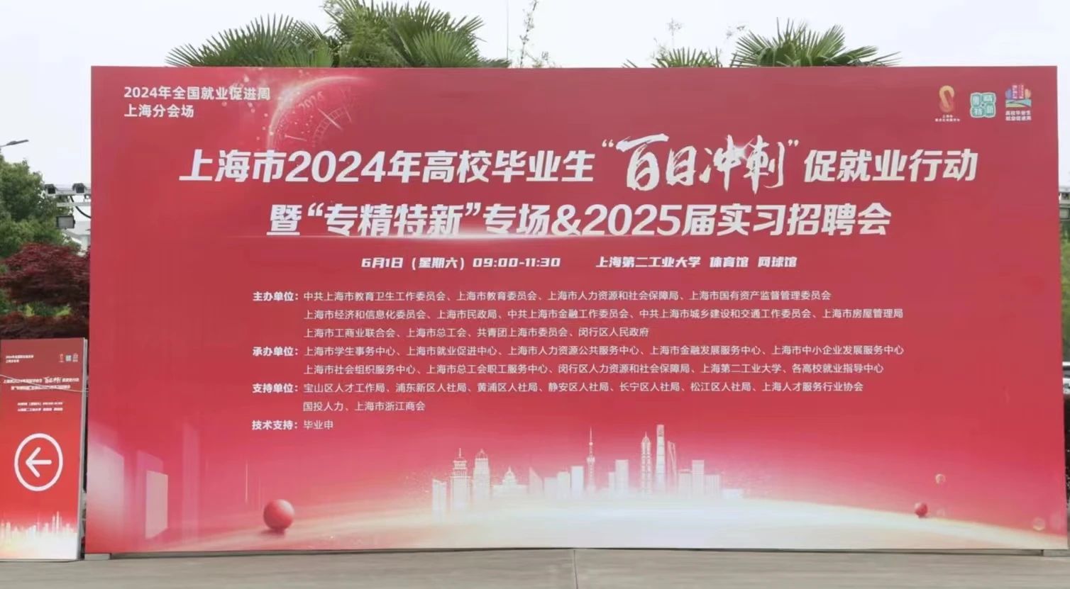 为深入贯彻落实习近平总书记关于促进高质量充分就业的重要讲话精神,在2024届高校毕业生就业工作关键时期,结合教育部关于就业促进周工作安排,上海市于6月1日在上海第二工业大学启动全市高校“百日冲刺”促就业行动暨“专精特新”专场招聘会。上海市副市长解冬,市政府副秘书长王平,市教卫工作党委副书记、市教委主任周亚明和市教委、市经信委、市总工会、市工商联等各委办局以及各高校相关负责同志出席活动。