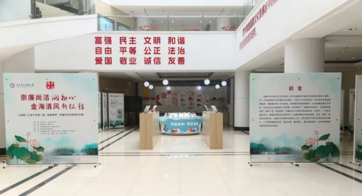 为进一步加强新时代学校廉洁文化建设,引导广大干部师生进一步夯实清正廉洁思想根基,厚植廉洁奉公文化基础,培养廉洁自律道德操守,弘扬崇廉拒腐社会风尚,结合党纪学习教育工作部署,日前,“崇廉尚洁润初心 金海清风新征程”暨第二届“金海清风”杯廉洁文化优秀作品展在上海第二工业大学图文信息中心一楼大厅举行。