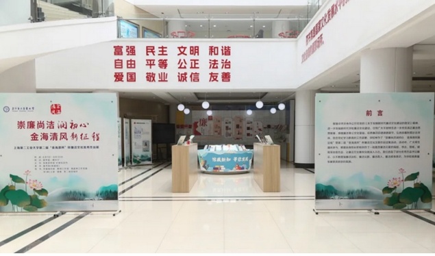 为进一步加强新时代学校廉洁文化建设,引导广大干部师生进一步夯实清正廉洁思想根基,厚植廉洁奉公文化基础,培养廉洁自律道德操守,弘扬崇廉拒腐社会风尚,结合党纪学习教育工作部署,6月5日上午,“崇廉尚洁润初心 金海清风新征程”暨第二届“金海清风”杯廉洁文化优秀作品展在上海第二工业大学图文信息中心一楼大厅举行。