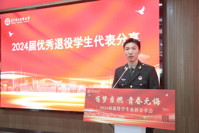 优秀退役毕业生代表刁文杰2019年应征入伍,2021年退役复学,再过三天,他就要离开二工大的校园。当时,正是在学校浓郁的征兵工作氛围的熏陶下,让他立志携笔从戎、参军报国。在服役期间,他参与一次重大军事演习与一次抗洪抢险任务,并获嘉奖一次。这份经历为自己的人生写下了浓墨重彩的一笔。