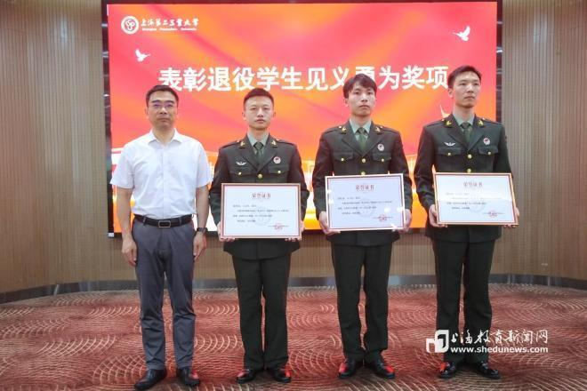 6月19日下午,上海第二工业大学举行2024届退役学生表彰分享会。会上,校党委副书记吴沛东为见义勇为勇救落水学生的陆欧成、刁文杰和梁宵等三位同学进行了颁奖,他们在关键时刻挺身而出、见义勇为的行为,充分展现了退役军人高度的社会责任感和退伍不褪色的奉献精神。