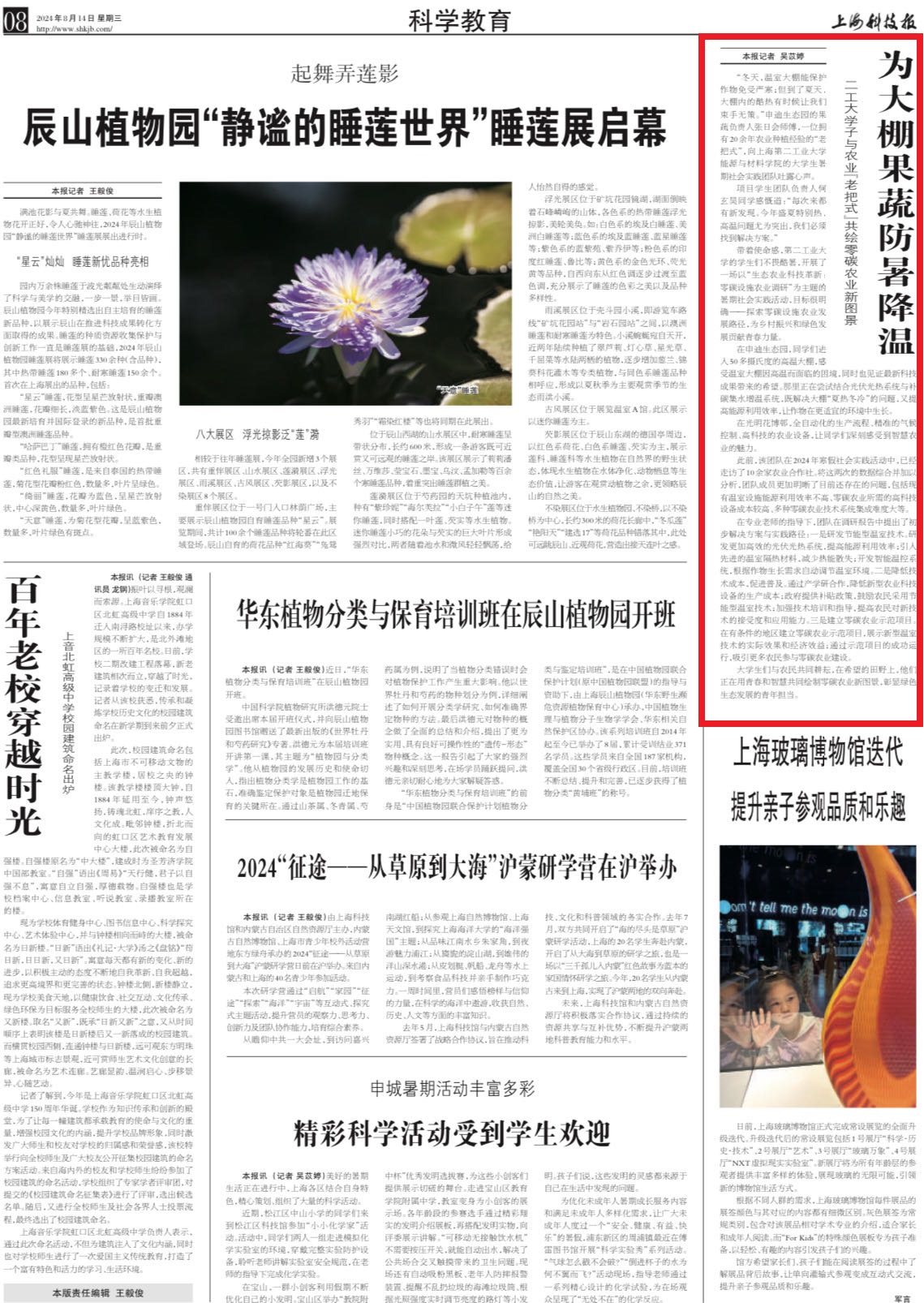 《上海科技报》:为大棚果蔬防暑降温