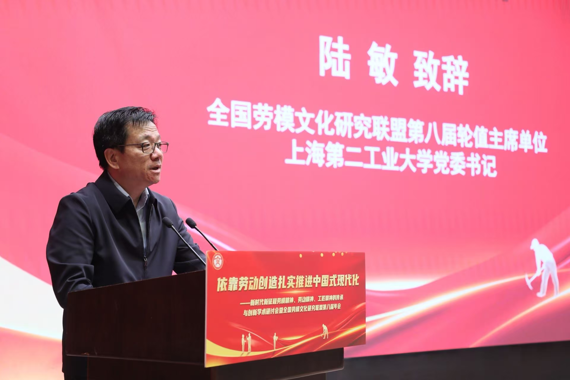 10月25日,以“依靠劳动创造扎实推进中国式现代化”为主题的新时代新征程劳模精神、劳动精神、工匠精神的传承与创新学术研讨会暨全国劳模文化研究联盟第八届年会在我校开幕。本次会议由上海市总工会、上海市教卫工作党委、上海市教委共同指导,全国劳模文化研究联盟联合中国职工文化体育协会“三个精神”专委会、中国高等教育学会劳动教育专委会、上海市劳动模范协会、上海市教育工会、上海第二工业大学等多家单位联合主办。来自全国各地的200余位专家学者、劳模工匠代表及高校师生齐聚浦江之滨,共同探讨劳模文化育人新机制,为弘扬“三个精神”、赋能中国式现代化贡献智慧力量。开幕式由上海市教育工会常务副主席朱姝主持。