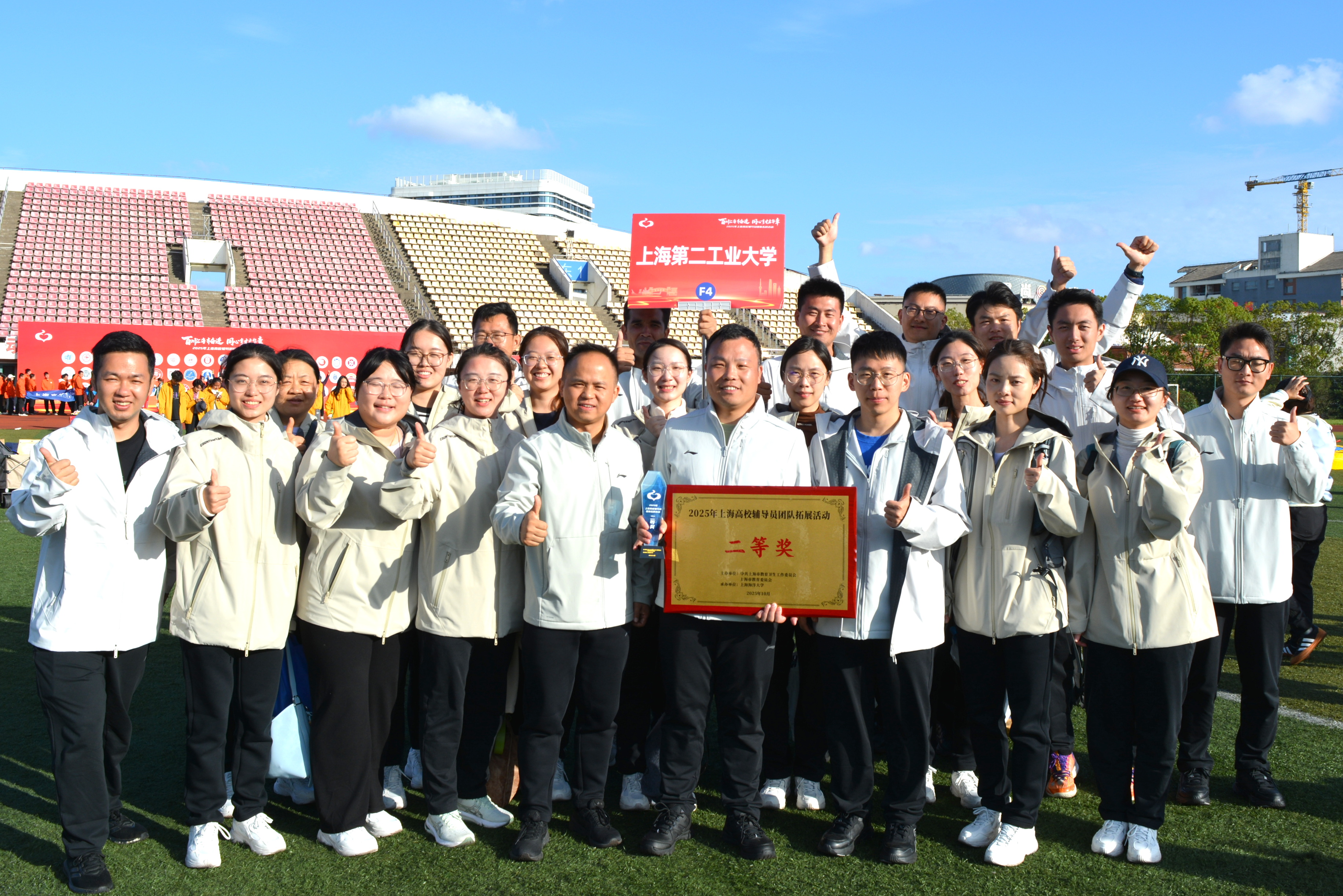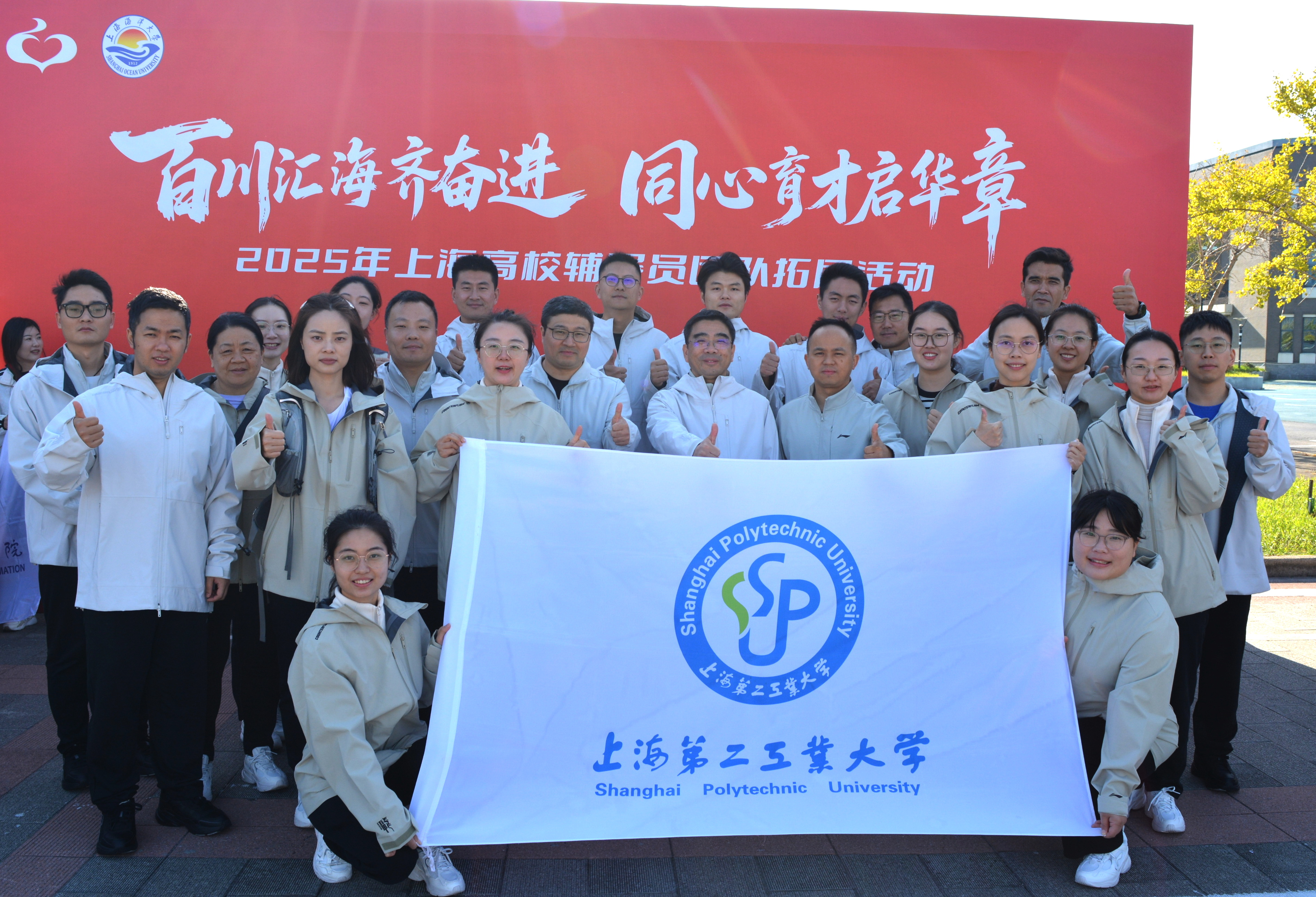10月25日,由中共上海市教育卫生工作委员会、上海市教育委员会主办的2025年上海高校辅导员团队拓展活动在上海海洋大学举行。我校派出辅导员组成的参赛队伍与来自全市58所高校的近千余名辅导员代表同场角逐、竞展风采,校党委副书记吴沛东出席活动并与辅导员们一块参加比赛,通过激烈比拼,我校最终斩获团队总成绩全市第8名,荣获团队二等奖。