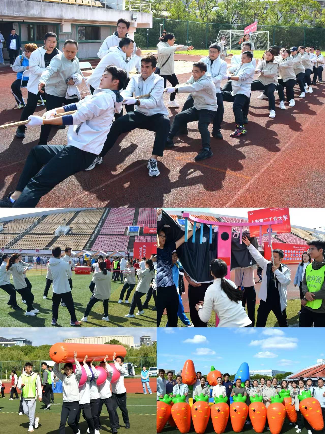 本次活动共设“一鼓作气”“出类拔萃”“携手并进”“眼明手捷”“力拔山河”等五个比赛项目,考验团队的协作精度、应变速度与意志强度。比赛现场,我校辅导员展现出良好的团队精神、拼搏精神和创新精神,“一鼓作气”同心共振,“携手并进”步伐协同,“力拔山河”咬牙凝神聚力,**完成所有**,并充分展现了辅导员队伍永葆“闯”的精神、激发“创”的劲头、发扬“干”的作风。