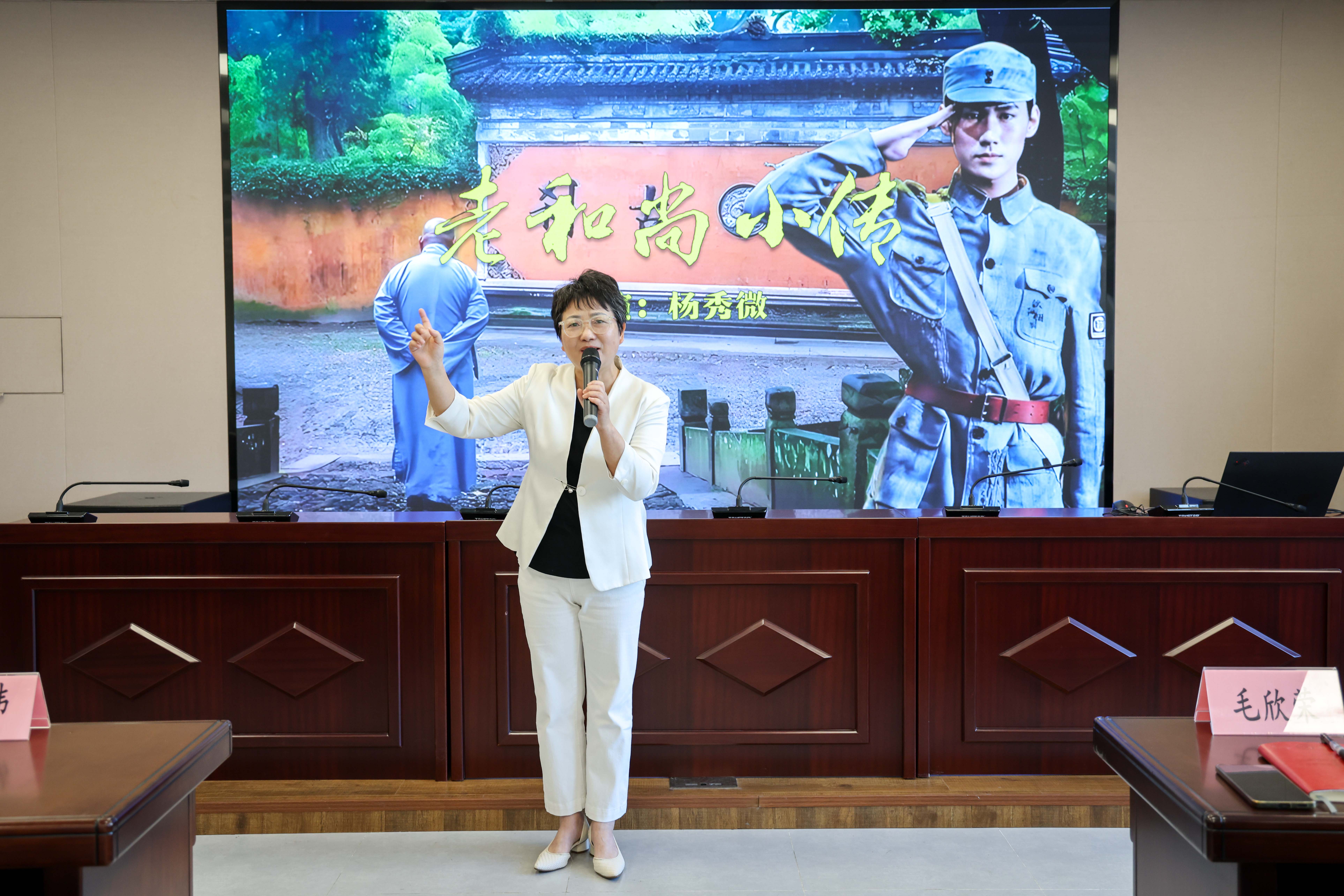 宣讲现场,一个个浸润着初心与使命的红色故事直抵人心。杨秀微老师深情讲述《“老和尚”小传》,回溯抗日战争时期潜伏于百家岭的新四军联络员“老和尚”的壮举:为掩护七名战士脱险,他被迫暴露一名战士藏身处致其牺牲,二十余年后真相揭晓——那位牺牲的战士正是他的亲生儿子。舍子救众的家国大义,让在场师生无不热泪盈眶。