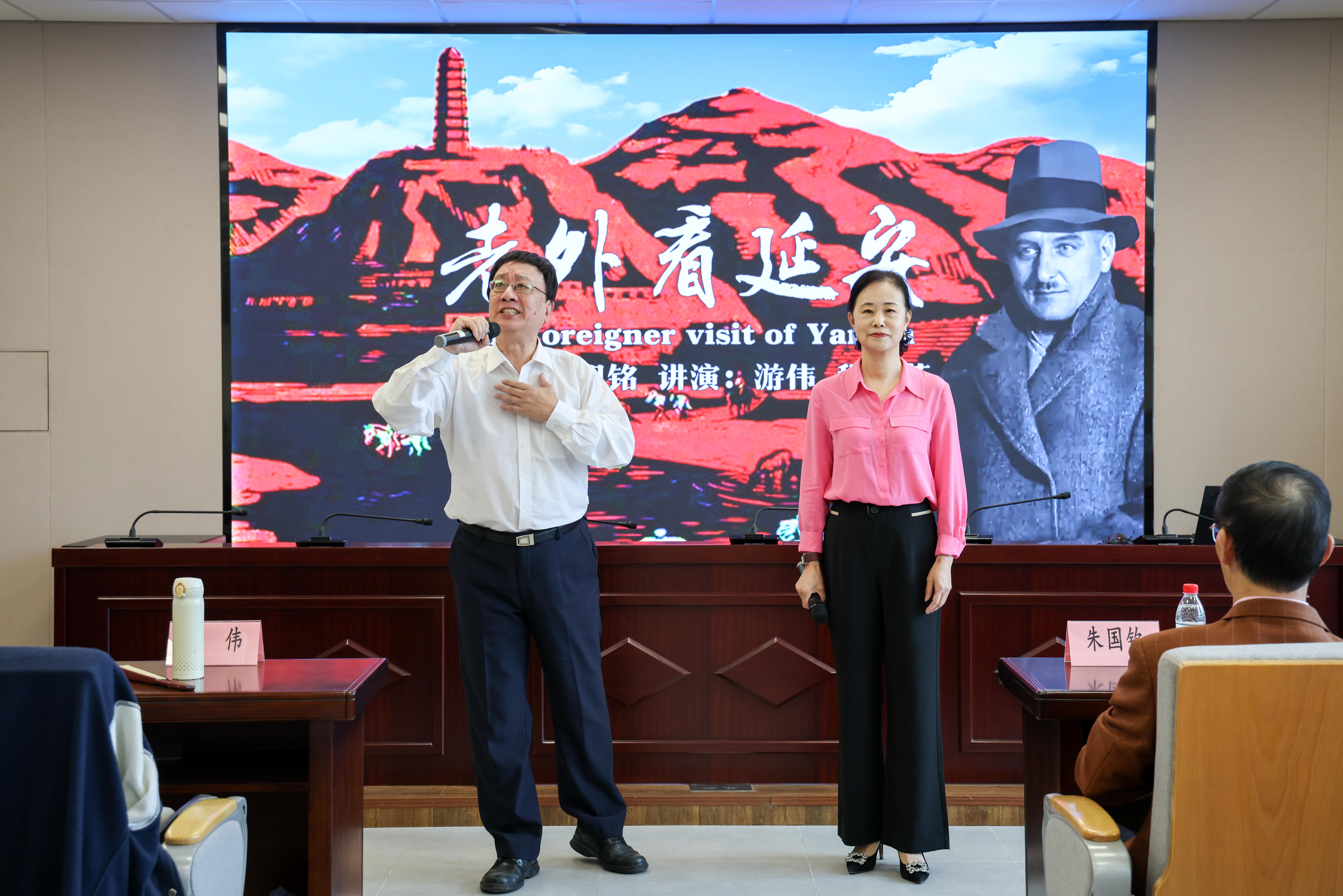 游伟与程海芗老师以对话宣讲形式带来《老外看延安》,通过瑞士记者博斯哈德1938年的延安见闻,生动再现了中国共产党在艰苦卓绝的岁月中坚守信仰、砥砺奋斗的精神风貌。在记者的镜头与笔触下,延安成为充满希望与感召力的“革命圣地”,让青年学子深切感受信仰的力量。
