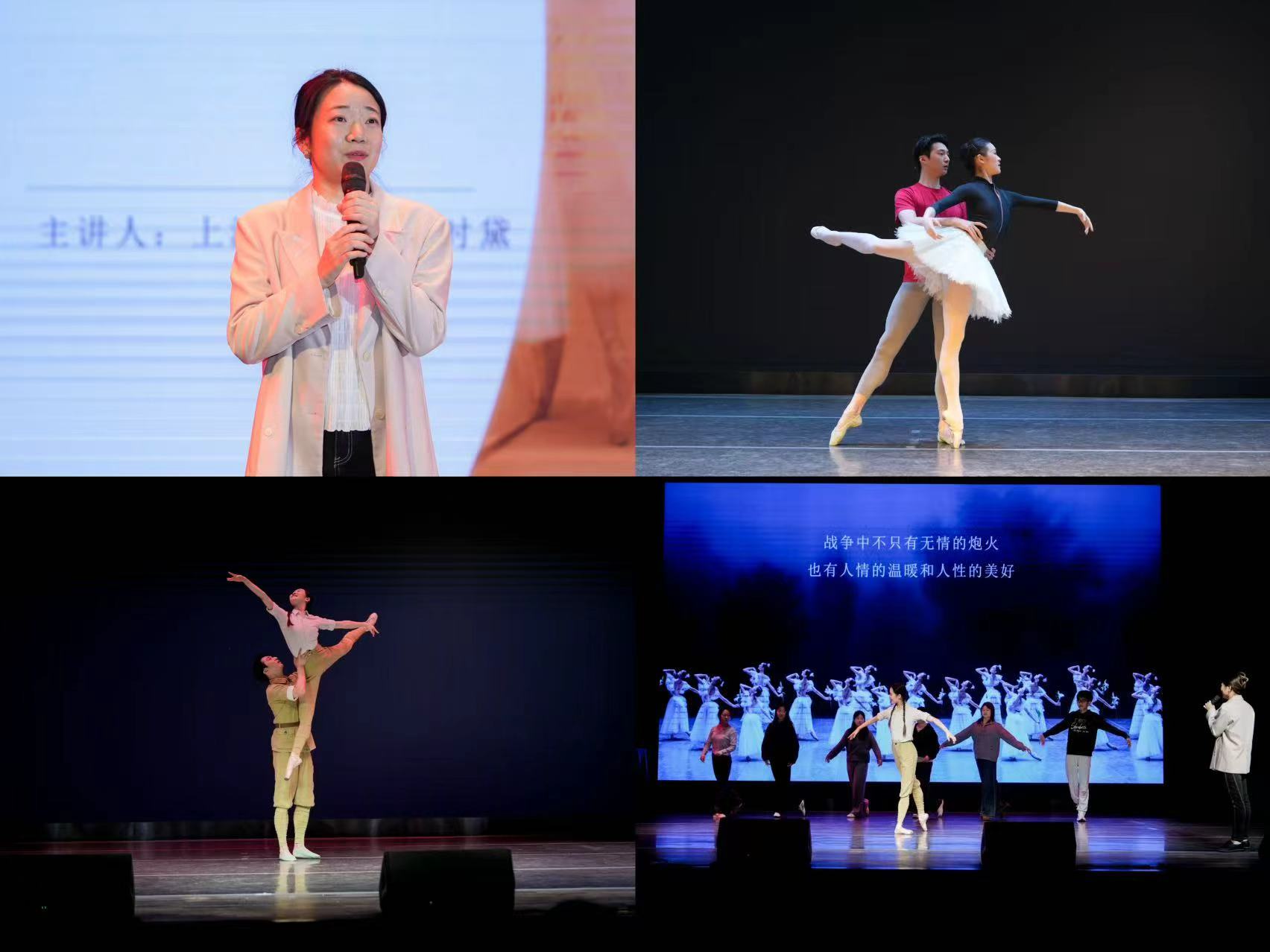 11月5日下午,文艺党课芭蕾舞剧《百合花》在我校学生活动中心二楼剧场举行。本次党课邀请上海芭蕾舞团走进我校,以经典芭蕾舞剧《百合花》为载体,通过“讲述+表演”的形式,向现场观众介绍上海芭蕾舞团创作这部舞剧的初心、编导组把短篇小说改编成芭蕾舞剧的创作心路历程,以及在创排过程中发生的精彩小故事。在表演环节中,上海芭蕾团舞蹈演员们以精湛的技巧和真挚的情感演绎出战争岁月中平凡人物的坚毅与信念,现场观众也积极踊跃上台跟随舞蹈演员学习剧中的经典动作。