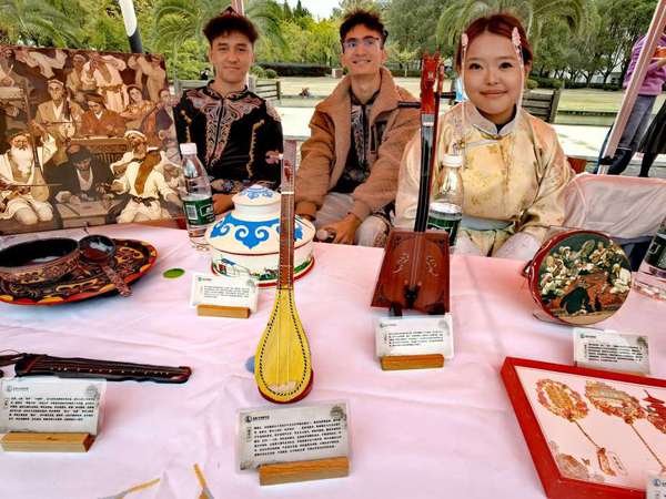 上海音乐学院将收藏于东方乐器博物馆里的维吾尔族乐器达卜带到了现场;对外经贸大学蒙古族女生热情地介绍民族特色乐器马头琴;精美的苗族银饰、美味的藏族酥油茶、有趣的中国古代汉族游戏捶丸…… 在民族特色文化展示和民族游戏互动体验区,各高校以“民族村”的形式展示民俗文化、民族风情,每个帐篷前都挂起了民族特色饰品、展示了民族游戏活动,吸引了大批学生驻足并亲身体验各民族的文化和风情。