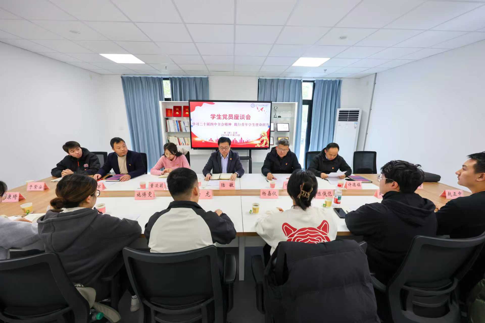 11月18日上午,校党委书记陆敏走进学生社区,以“学习党的二十届四中全会精神 践行青年学生使命担当”为主题,与来自各学院的学生党员面对面座谈交流。党委办公室、组织部、学(研)工部等相关部门负责人参加座谈会。