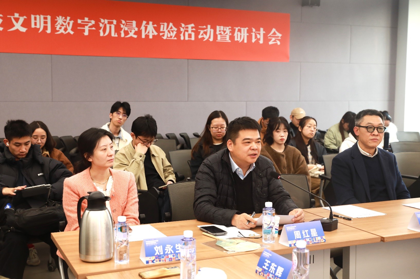 11月22日下午,“中华科技文明数字沉浸体验活动暨研讨会”在艺术与设计学院24号楼303室举行。上海第二工业大学副校长白建峰、上海市教委学生处副处长周红星,来自设计教育领域的专家学者、政府相关部门代表、合作企业相关负责人以及艺术与设计学院班子成员等60余人出席活动。研讨会由艺术与设计学院党委副书记张瑞瑶主持。