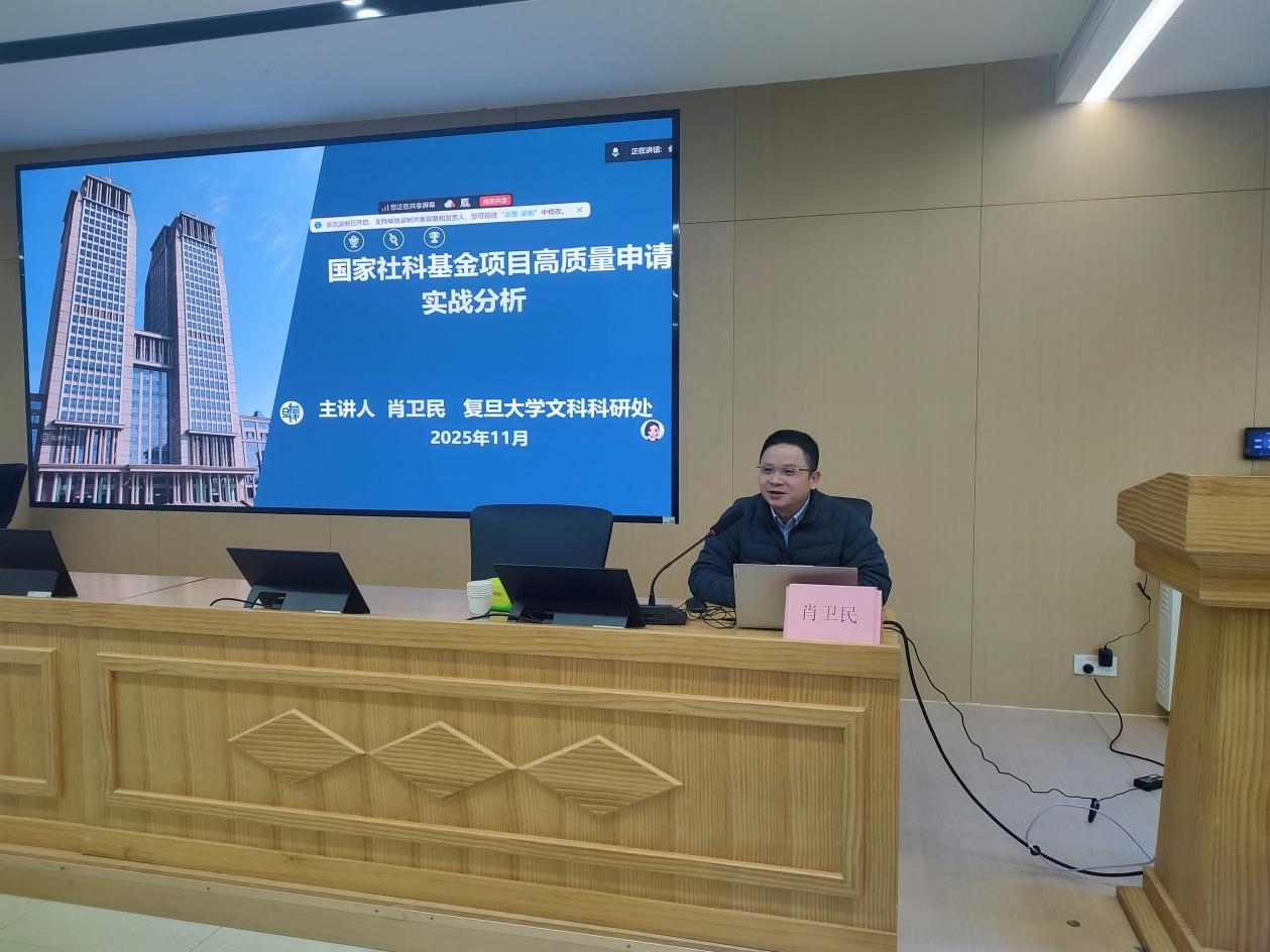 丁彬指出,国家社科基金是学校加强新型智库建设和提升科研资政水平的重要抓手,希望广大教师全面领会国家社科基金项目申报指南的精神实质和内涵要求,通过基金申报找准研究方向、捋顺科研路径、实现学术成长和科研突破。