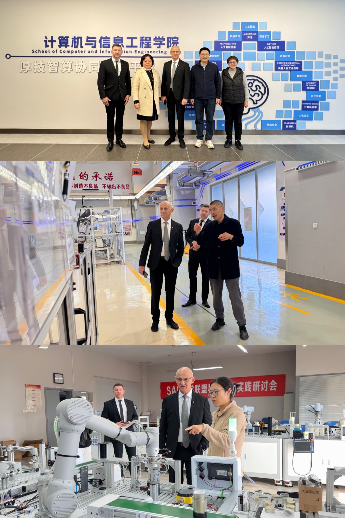 双方就师资交流、共同申报科研合作项目、联合实验室建设、博士联合培养、学生交流、短期项目等合作进行了深入交流,并达成广泛共识。来访期间,代表团一行还参观了智能制造与控制工程学院、计算机与信息工程学院的教学和科研场所,并与相关负责人和专业教师进行了交流。