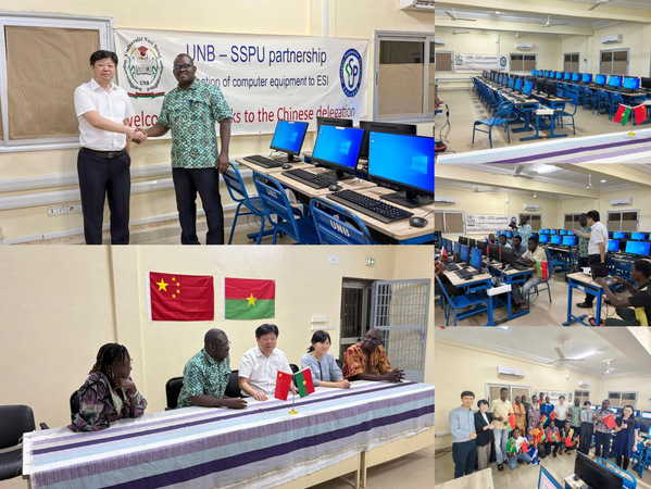 12月4日至6日,代表团访问纳兹·博尼大学,开展了一系列务实深入的交流活动。副校长Sanwé Médard Kienou全程接待了代表团,参与接待人员有副校长Wend Woaga Jean de Dieu Zabsonre,秘书长Sanwé Médard Kienou,计算机科学学院院长Ouattara Compaore Anasthasie Joelle以及计算机科学学院教师等人员。在校方代表的陪同下,代表团首先参观了由我校援建的计算机实训室,并为已投入运行的计算机及网络实训系统揭牌。该实训室设备先进、功能完善,标志着两校在职业教育硬件共建方面取得重要进展。双方围绕我校援助二期实验室建设的规划与实施路径进行了磋商,为进一步提升实训教学条件奠定基础。