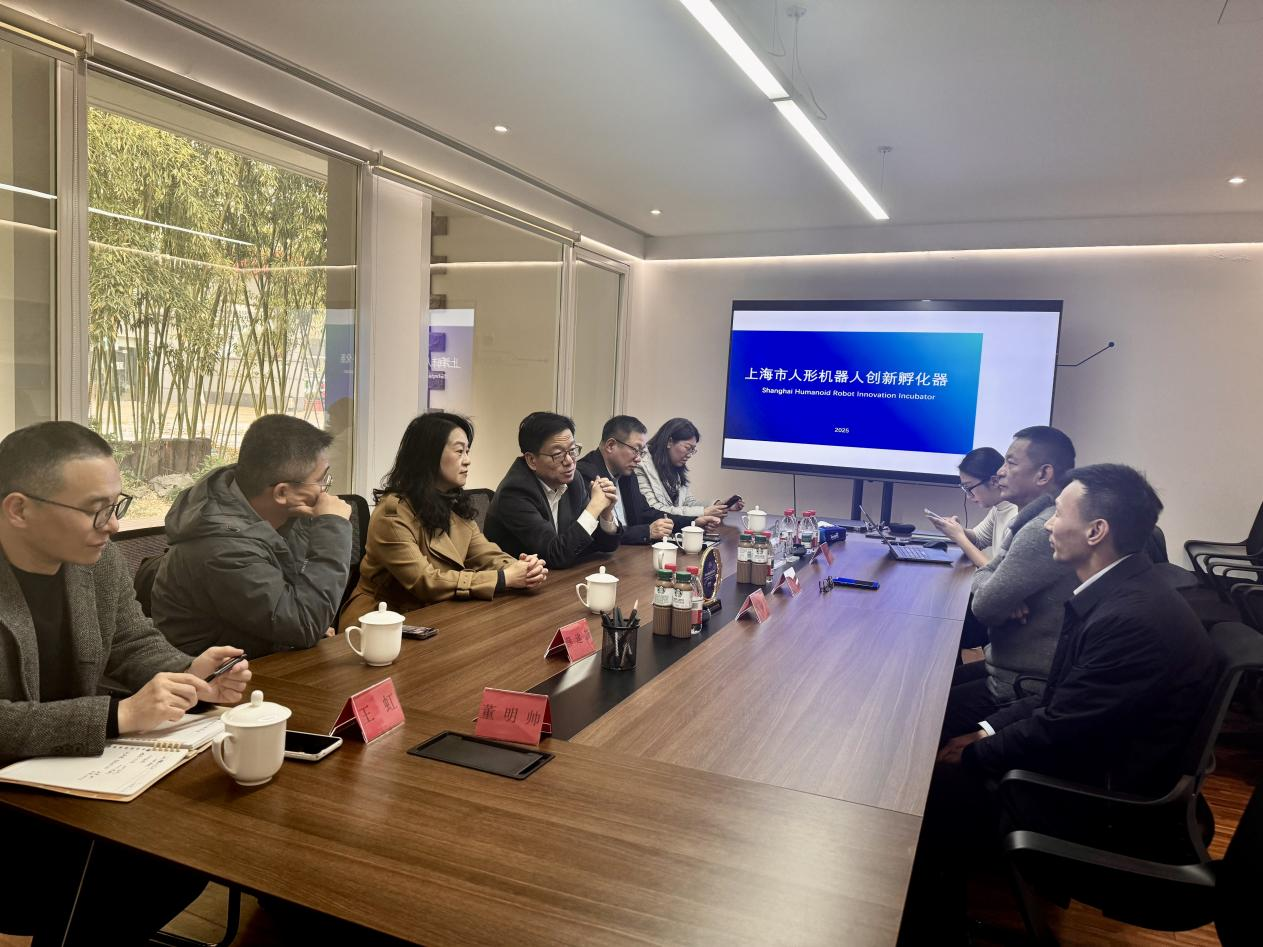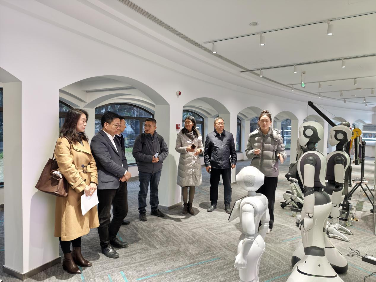 座谈结束后,陆敏书记一行实地参观了上海具身智能孵化基地,近距离考察了人形机器人等前沿技术的研发现状、应用场景与未来趋势。学校产学研合作办公室、智能制造与控制工程学院、计算机与信息工程学院、艺术与设计学院相关负责人参与调研。