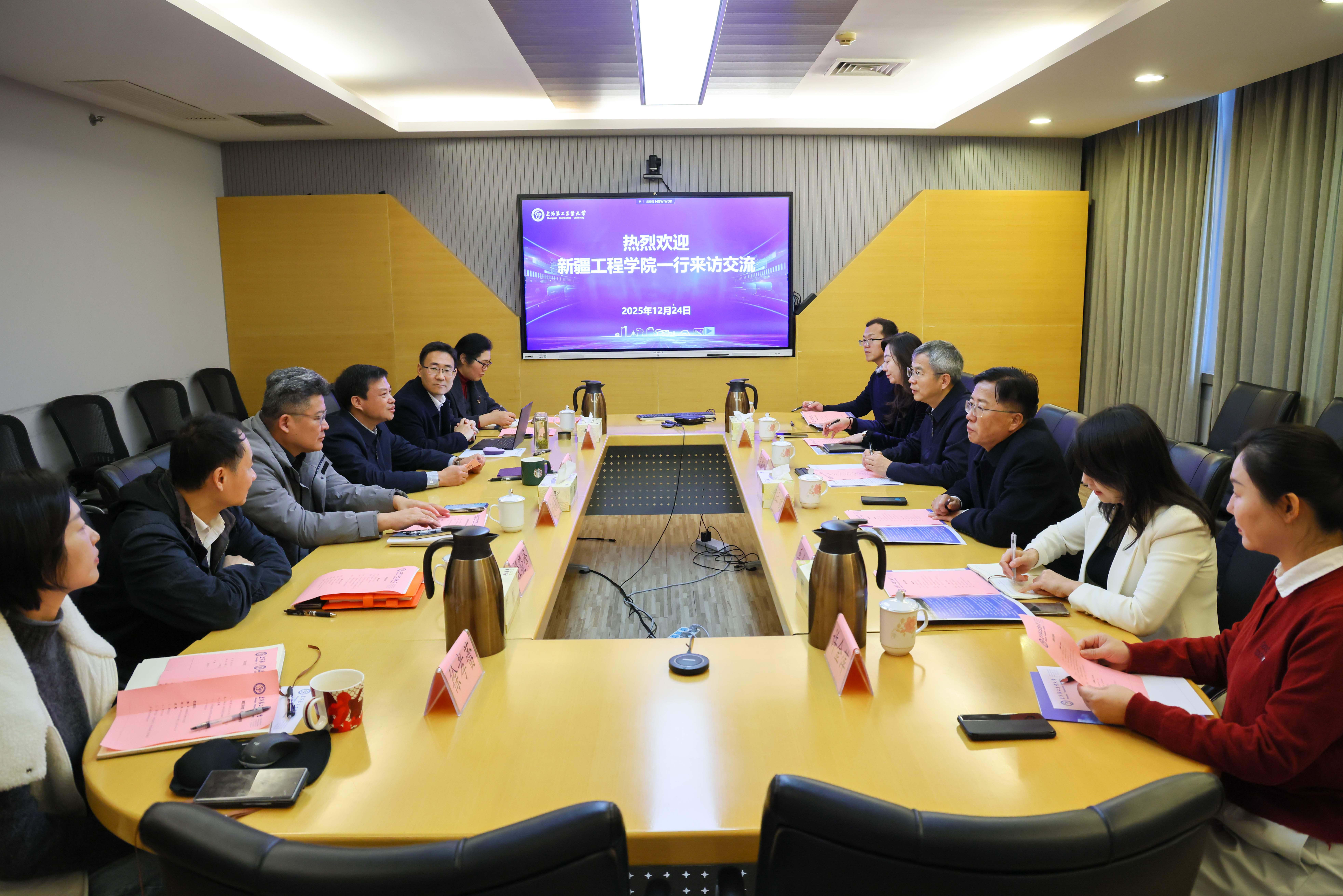 12月24日,新疆工程学院党委副书记、校长周建平带队来访交流。校党委副书记、校长谢华清热情接待了来宾,双方围绕干部互访学习机制、研究生培养模式、学科建设与产学研合作等议题展开交流,共同探讨两校跨区域协同合作的可行路径。