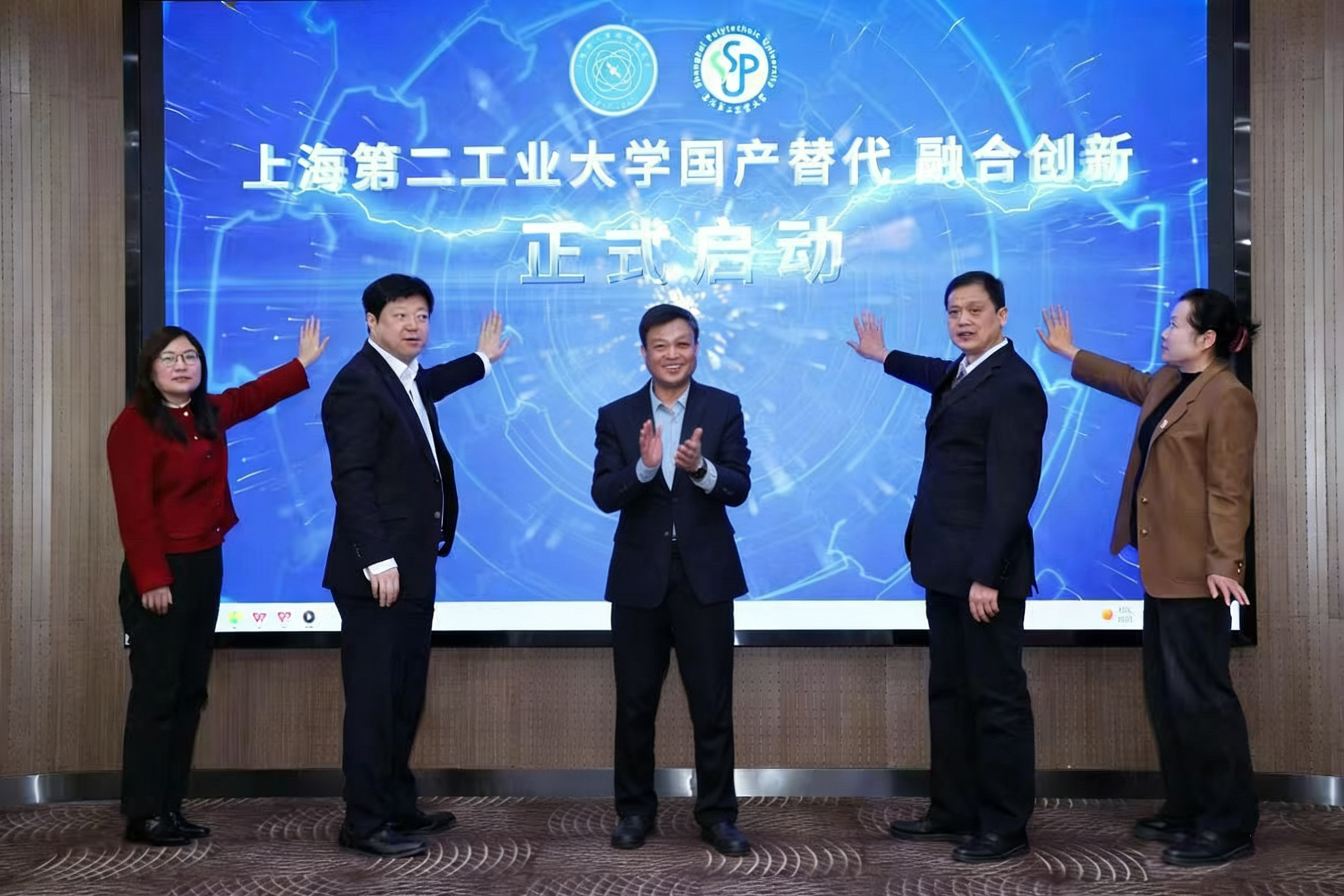 会上,校领导、市工商联及市工商联科技商会负责人、市产业协同政策专家共同为“上海第二工业大学国产替代 融合创新启动仪式”按下启动键。