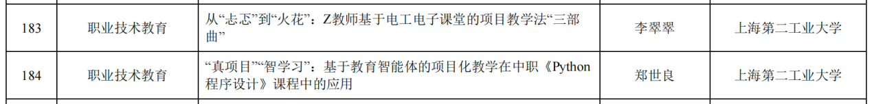 此次入选的案例是李翠翠老师提交的《从“忐忑”到“火花”:Z教师基于电工电子课堂的项目教学法“三部曲”》、郑世良老师提交的《“真项目”“智学习”:基于教育智能体的项目化教学在中职<Python程序设计>课程中的应用》。