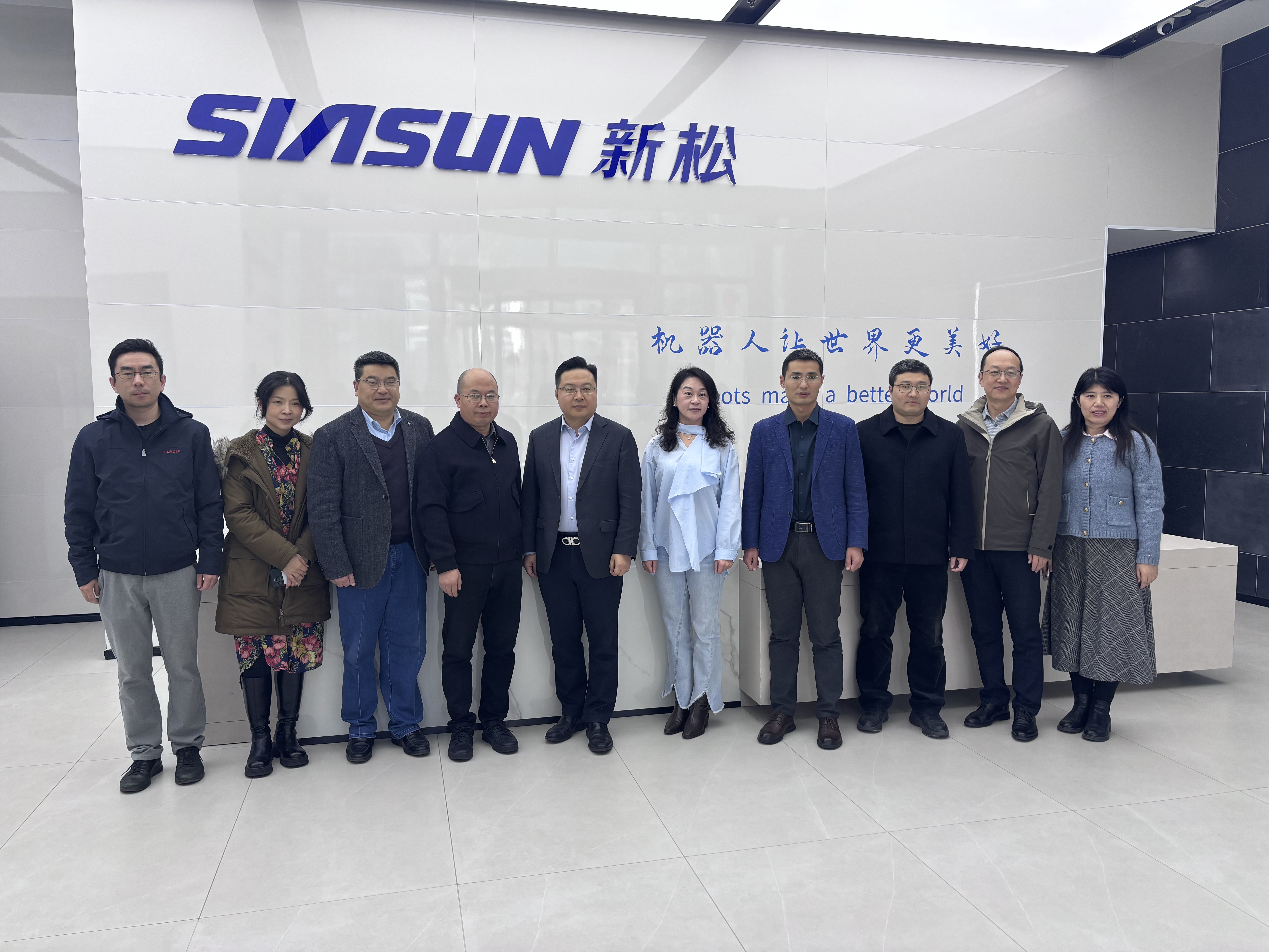 会后,学校一行参观了新松机器人展厅和焊接机器人实验工厂,从协作机器人到复合机器人,从柔性装配线到智能物料系统,近距离体验了机器人技术在工业场景中的创新应用。大家对新松“机器人让世界更美好”的企业愿景有了更直观的理解。