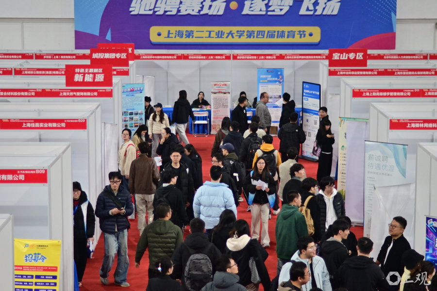 今天(3月27日),数千应届生在上海第二工业大学体育馆迎来2026届毕业生春季供需对接专场活动暨招聘会,与全场提供的上万个就业岗位“双向选择”。此次校园春招吸引350余家优质用人单位参会,覆盖集成电路、生物医药、人工智能、电子信息、先进材料、绿色低碳等20余个行业,宝山区、崇明区团委、城投集团、北科创集团等均组团进校招聘。记者见到招聘现场还配置了简历一体机、面试屏等智能设备,为毕业学子提供简历智能润色、沉浸式面试模拟等数字化求职支持。