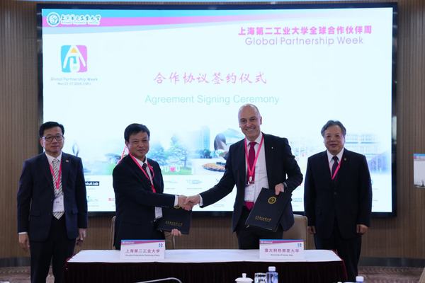 在合作签约环节,校长谢华清与意大利热那亚大学校长费德里科·德尔菲诺签署了智慧能源联合实验室合作协议,与新西兰曼努考联合理工学院副校长西蒙·纳什签署了校际合作备忘录。上海教育国际交流协会秘书长李维平、上海第二工业大学党委书记陆敏、新西兰曼努考联合理工学院国际合作经理丁佳露先后见证签约。