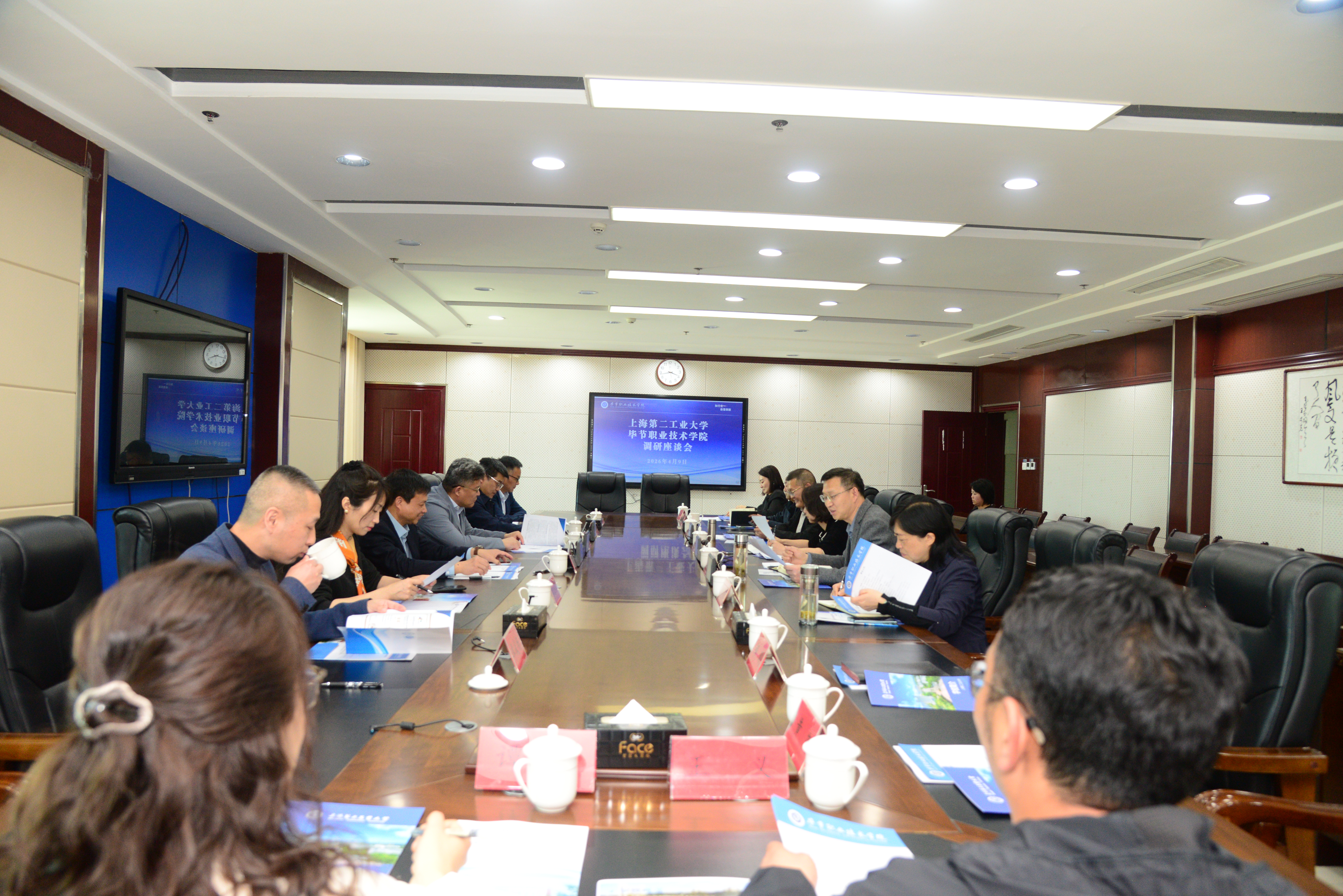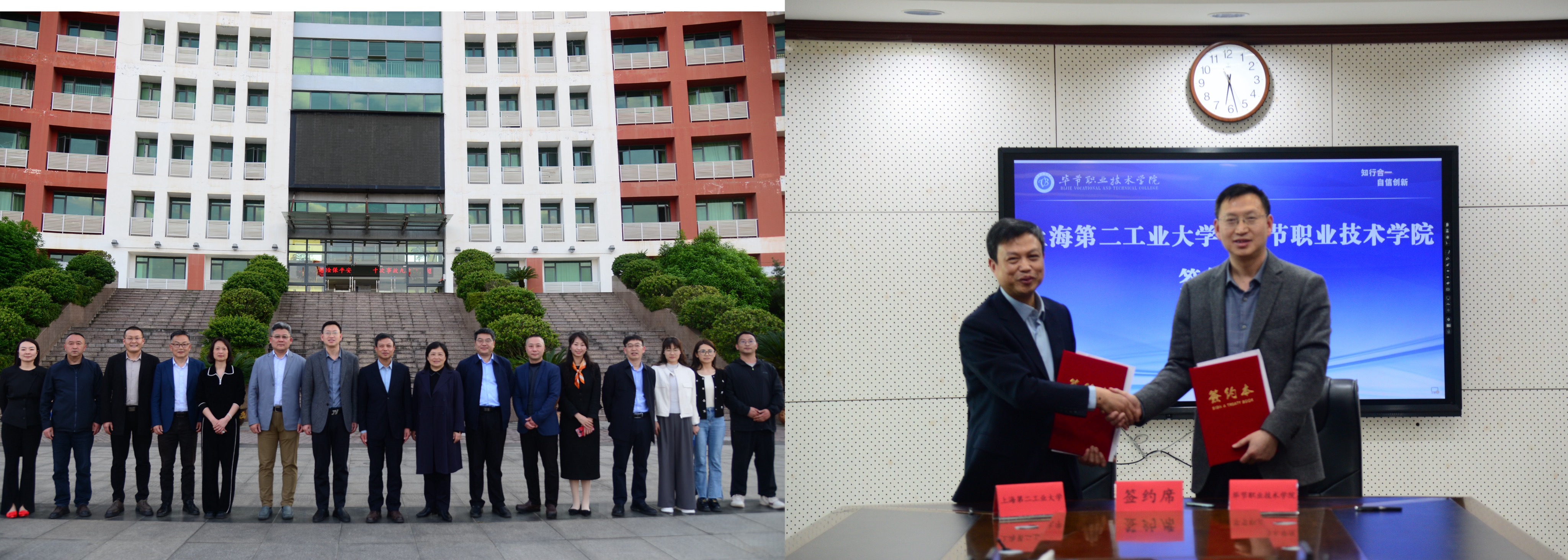 为深入贯彻落实习近平总书记关于深化东西部协作的重要指示批示精神,积极响应党中央、国务院关于新时代振兴中西部高等教育和关于加快革命老区振兴发展的决策部署,深化沪黔两地人才协作,加强校际交流合作,主动服务国家战略和区域经济社会发展,4月9日至10日,校长谢华清带队赴贵州毕节、遵义,先后走访毕节职业技术学院和遵义师范学院开展调研交流。毕节职业技术学院校长桂祥友、副校长黄瑛和遵义师范学院党委书记陈治松、校长刘衍民、副校长张鹏、肖仲久、吴波、闫万珺接待了我校一行。