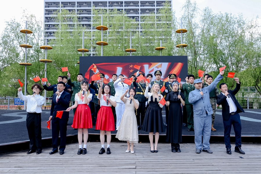“烽火岁月,家国壮歌”篇章中,马院老师刁含勇以微课《铭记历史,铸强国防》为开篇,伴着经济与管理学院辅导员姜俊亮演绎的《松花江上》及师生四重唱《我的祖国》,令人铭记“安而不忘危”的深刻道理;“忠诚坚守,无名奉献”篇章中,学校退伍大学生身着戎装高唱《强军战歌》《祖国不会忘记》,大学生兵代表朱隽伟展开微宣讲《戎装虽卸 初心不改》,分享守护家国的亲身经历与赤诚之心;“盛世如愿,家国同梦”篇章中,《国家》《如愿》等乐声与退伍大学生朗诵的《守安强国 戎光筑防》诗篇交相辉映,最后全场共唱原创歌曲《奋斗告白祖国》。