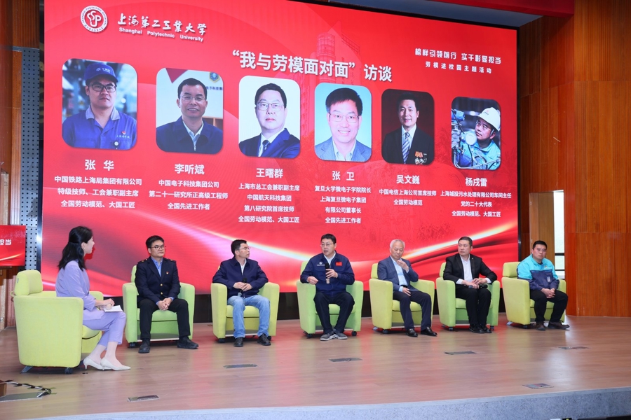 4月23日,上海第二工业大学“榜样引领前行 实干彰显担当”劳模进校园主题活动举行。从守护城市碧水清流的污水处理、破解高原千年供水难题的数字化创新,到突破芯片核心技术报国攻坚,六位来自航天、科技、通信、环保等领域的劳模走进校园,与三百余名师生共话奋斗、传递匠心,带来一堂直抵人心的思政大课。