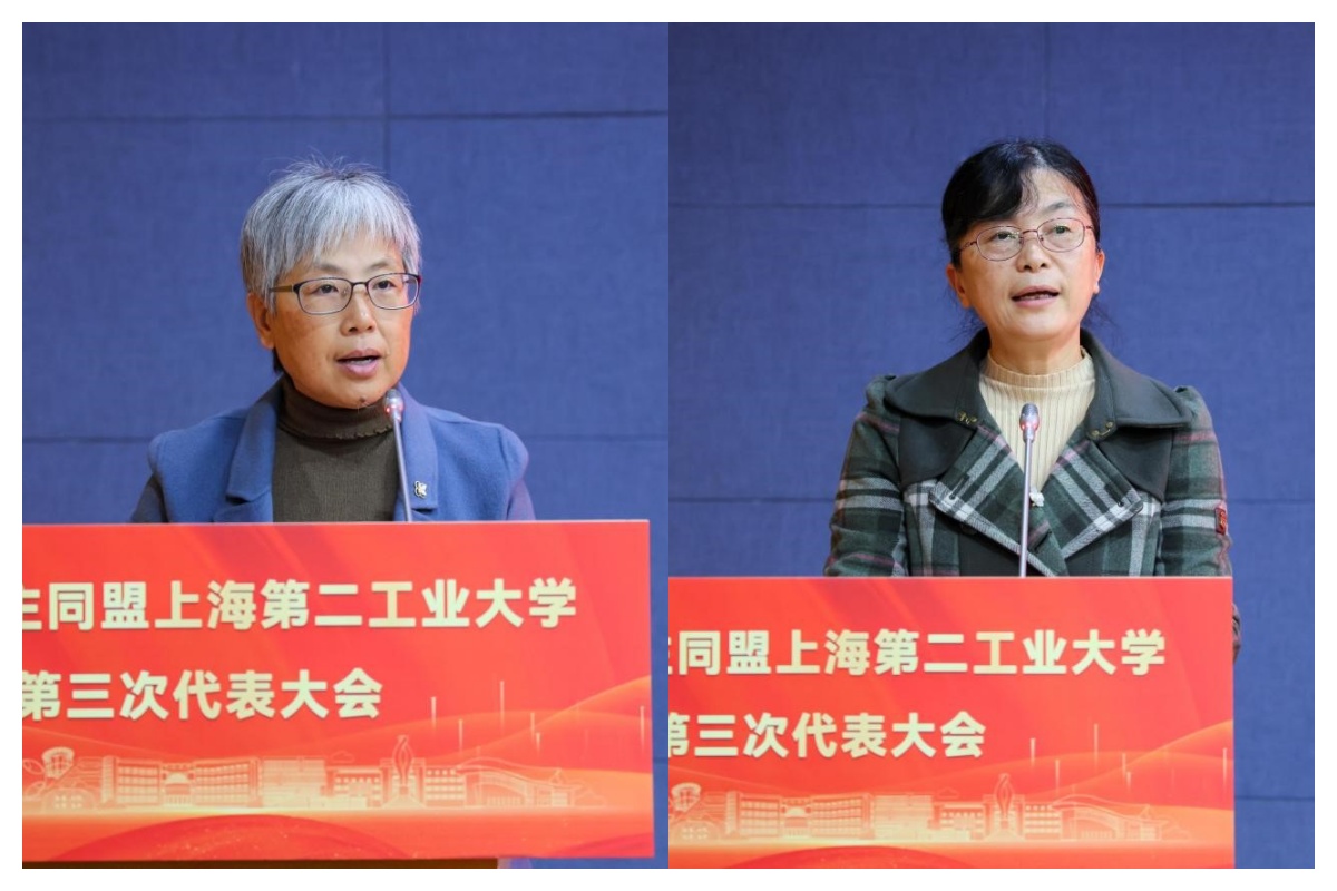民盟浦东区委副主委、浦东新区红十字会监事长潘成英,民建上海第二工业大学支部主委郑佩芸,分别代表民盟浦东区委和兄弟党派对本次大会的顺利召开表示祝贺。