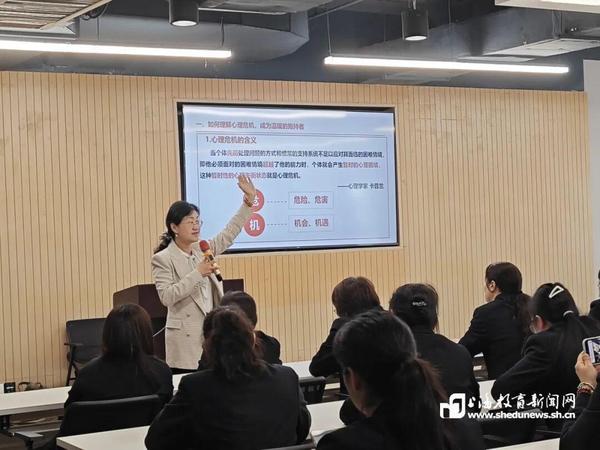 在活动前期,学校还特邀心理健康教育专家为后勤宿管与安保人员开展大学生心理健康工作专题培训。培训聚焦心理危机识别与初步干预,内容涵盖“什么是心理危机”“如何识别心理危机”“QPR危机干预技术”等核心模块,结合校园工作实际,帮助后勤与保卫人员在日常巡查和管理服务中做到早发现、早关注。